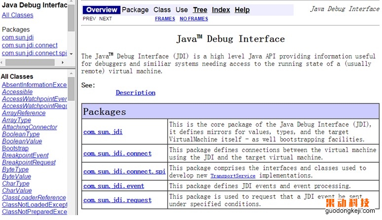 JDI屬于JPDA中上層接口,也是Java程序員接觸的比較多的。他用起來也比較簡單,參考JDI的API Doc即可。所有的功能都和JVMTI提供的調試功能一一對應的(JVMTI還包括很多非調式接口,JDK5以前JVMTI是分為JVMDI和JVMPI的,分別對應調試debug和調優profile)。