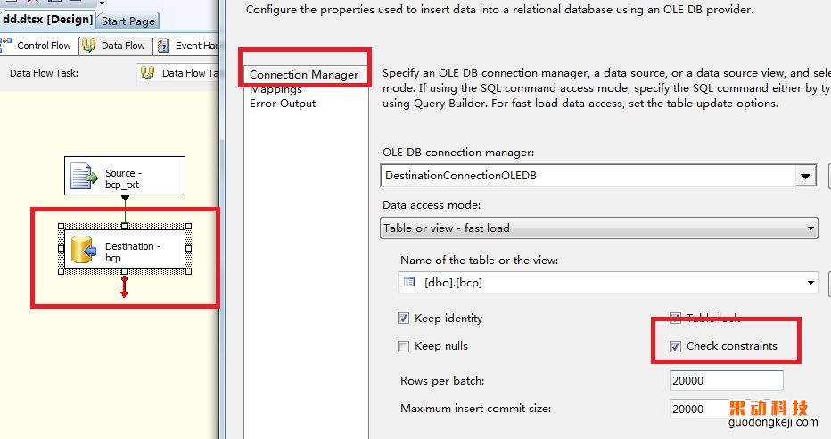 1. import/export data方式需要先保存SSIS包,然后修改Connection Manager的屬性