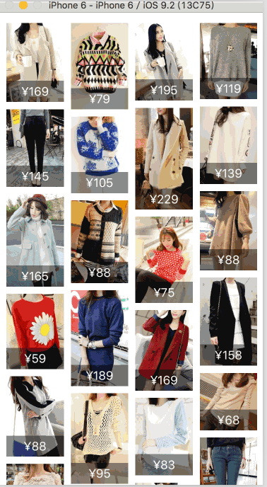 使用這個方法,對比以上方法,UICollectionView 系統幫解決了cell的重用問題,而且不需要分列管理,在計算的時候也比較方便,所以大多數的瀑布流都使用 UICollectionView