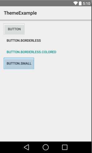 style="@style/Widget.AppCompat.Button" style="@style/Widget.AppCompat.Button.Borderless" style="@style/Widget.AppCompat.Button.Borderless.Colored" style="@style/Widget.AppCompat.Button.Small"