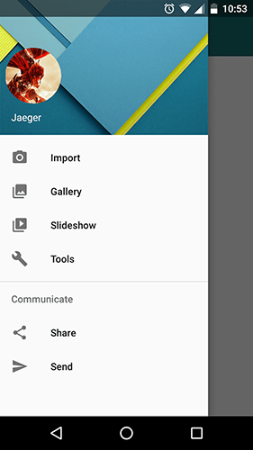 需要注意的是,DrawerLayout 的布局只能包含兩個(gè)直接子布局,一個(gè)是內(nèi)容布局,一個(gè)是抽屜布局,結(jié)構(gòu)如前面的示例布局所示,如果內(nèi)容布局的根布局如果不是 LinearLayout 需要對(duì)其子布局設(shè)置padding top值,否則仿狀態(tài)欄色塊會(huì)被遮擋在下面,布局內(nèi)容延伸到狀態(tài)欄,如下圖所示: