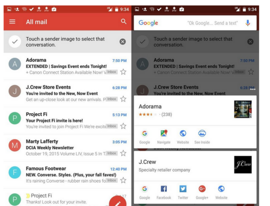 Google Now算是谷歌安卓系統(tǒng)上的一項“殺手锏”功能,而Google Now On Tap,實際上就是應用內(nèi)的功能。當用戶打開某個應用后,只要按住Home鍵,Google Now就會對其進行分析,給出相關(guān)信息(比如地理位置、人物簡介等),然后以卡片形式顯示。