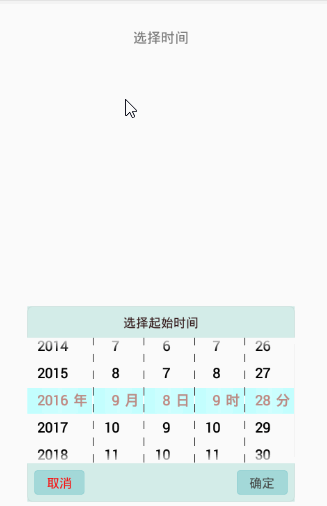 日期選擇器是很多應(yīng)用所具備的,比如設(shè)置一些任務(wù)的開始和結(jié)束時(shí)間。為了方便用戶的同時(shí)也為了界面的好看,很多都是采用日期選擇器,我在網(wǎng)上看了一下。很多的日期選擇器個(gè)人感覺不是很好看,但是修改起來也有點(diǎn)麻煩,于是自己就寫了一個(gè)demo。至于界面效果個(gè)人感覺也是很low,畢鄙人不是搞UI的,所以也就湊合著看吧。這些都不重要,因?yàn)檫@些是可以修改的。