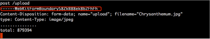 服務端會打印下面的提示,注意紅框中的 token,它用來表示二進制數據的邊界。