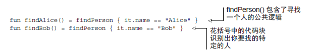 假設(shè)你有兩段類(lèi)似的代碼,實(shí)現(xiàn)相似的任務(wù)(例如,在集合中尋找一個(gè)匹配的 元素)但具體細(xì)節(jié)略有不同(如何判斷元素是匹配的)。可以輕易地將這段邏輯中公 共的部分提取到一個(gè)函數(shù)中,并將其他不同的部分作為參數(shù)傳遞給它。這些參數(shù)本身也是函數(shù),但你可以使用一種簡(jiǎn)潔的語(yǔ)法來(lái)表示這些匿名函數(shù),它被稱(chēng)作 lambda 表達(dá)式 :