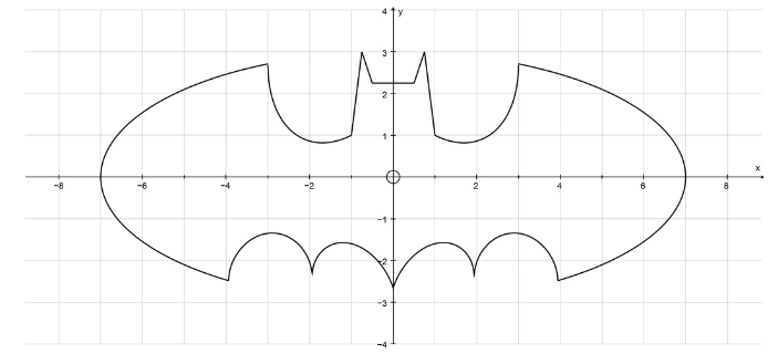現(xiàn)在,想象一下我們想要計(jì)算蝙蝠俠曲線方程(Batman Equation)繪制的形狀的面積: