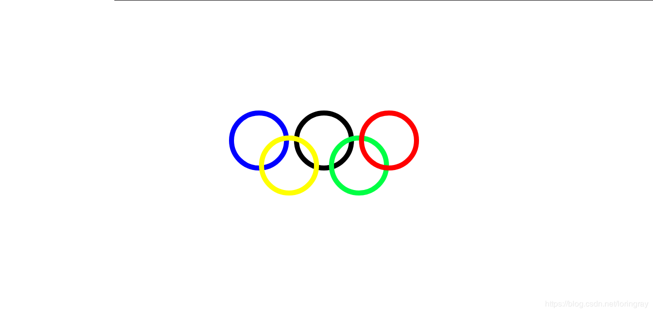 用css實現奧運五環樣式,并且于頁面居中顯示,不隨頁面滾動條而移動,一直處于居中位置。